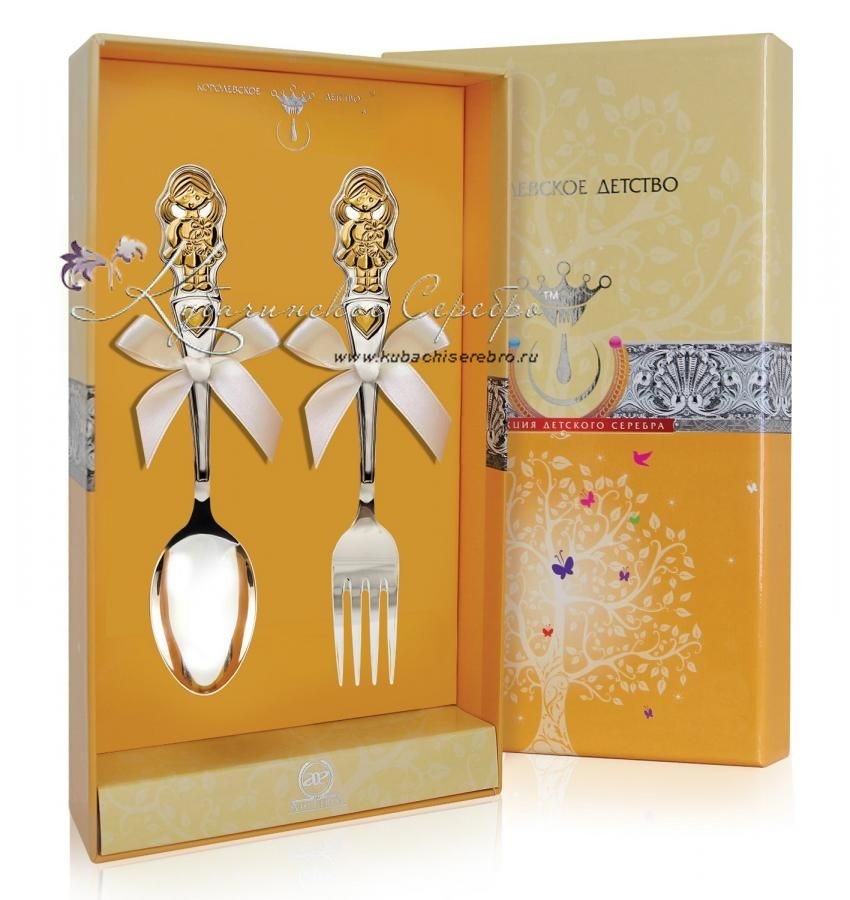 Детский набор "Девочка" с позолотой (ложка+вилка), арт №6309