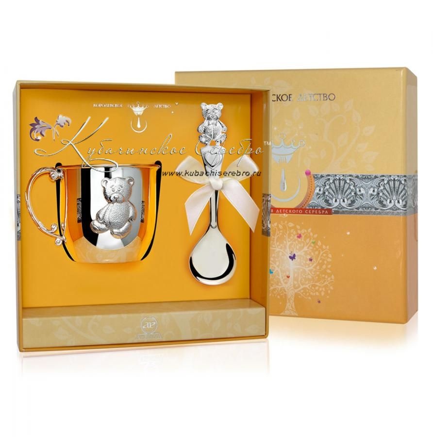 Набор детского серебра "Мишутка" (кружка+ложка), арт №6325