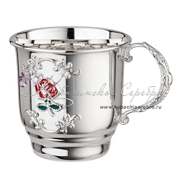 Кружка "Роза" 925 пробы с холодной эмалью на 150 мл (Новинка), арт №8065