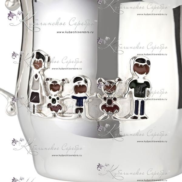 Кружка "Семья" с эмалью, 925 пробы на 150 мл , арт №6069