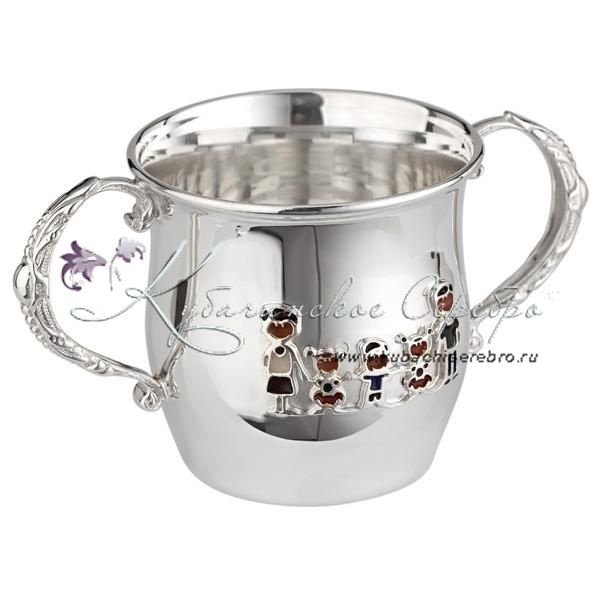 Поильник "Семья" с эмалью, 925 пробы с эмалью на 150 мл , арт №6079