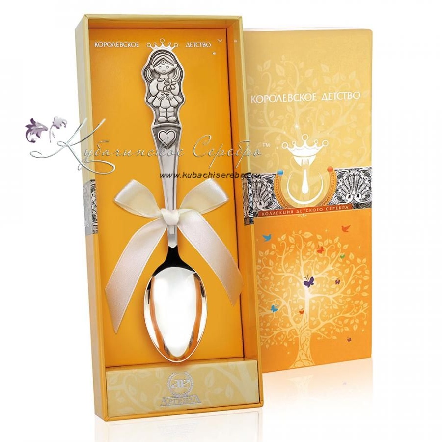 Серебро 925 пробы. Фабрика серебра "Аргента". На детской ложечке с чернением изображена девочка-куколка в платьице с цветочком.