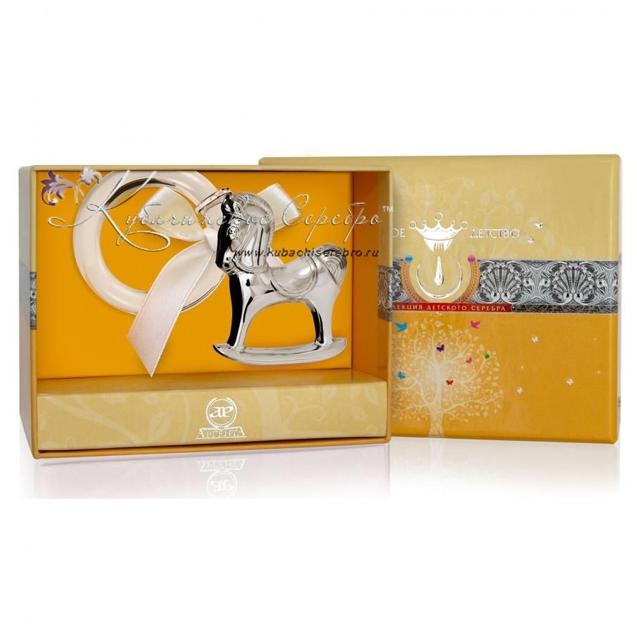 Серебро 925 пробы, акриловое кольцо. Фабрика серебра "Аргента". Изящная серебряная лошадка на акриловом кольце - занимательная игрушка для всех малышей. Её приятно рассматривать, её можно пробовать на вкус, она звонко звенит, её интересно трогать и одевать на ручку. В игре с такой погремушкой задействованы все органы чувств, что очень важно именно в раннем возрасте.