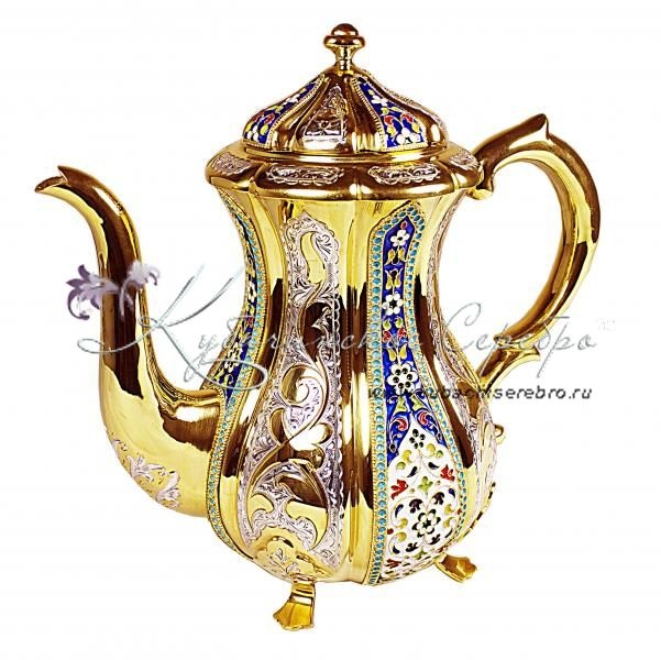 Чайник с позолотой и горячей эмалью на 1200 мл, арт №1429