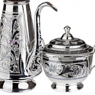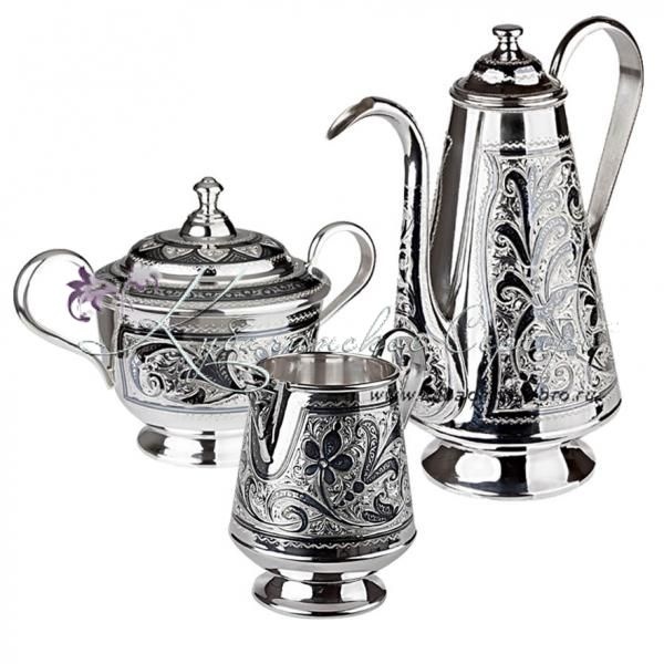 Серебро 875 пробы. В набор входят: кофеник, молочник, сахарница.
