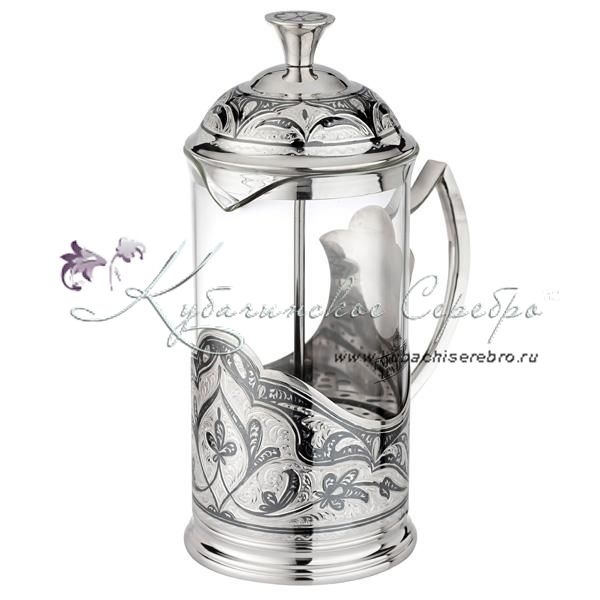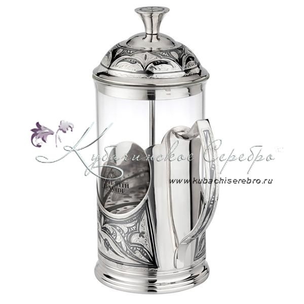 Заварочный чайник (френч-пресс), корпус из серебра 875 пробы. С колбой из жаропрочного стекла.
