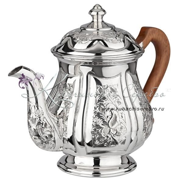 Серебро 875 пробы. Чайник с деревянной ручкой, дерево дуб. Изделие станет прекрасным и функцональным подарком!