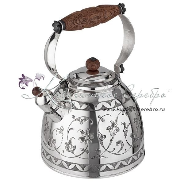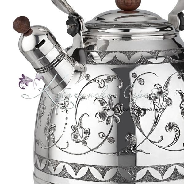 Серебро 875 пробы. Вставка - дерево дуб. Чайник можно использовать на электроплите или на газовой плите с использованием рассеивателя. Гарантия высшего качества от фирменного магазина!