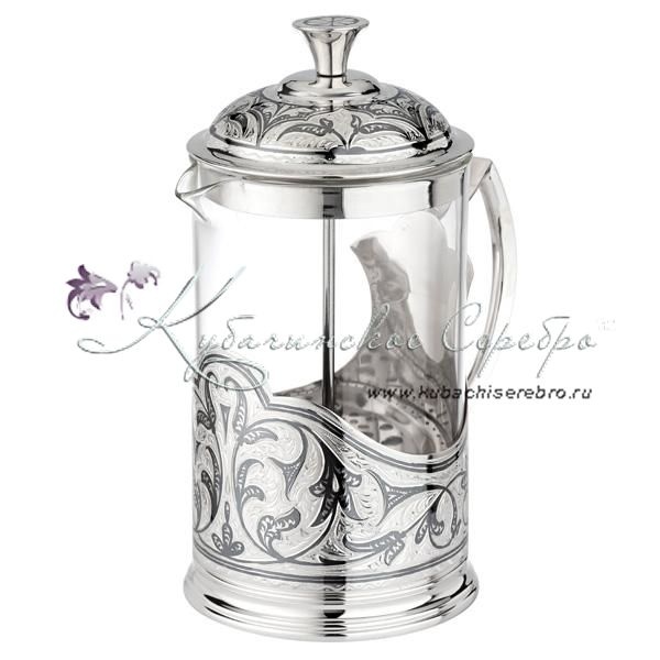 Заварочный чайник (френч-пресс), корпус из серебра 875 пробы. С колбой из жаропрочного стекла.