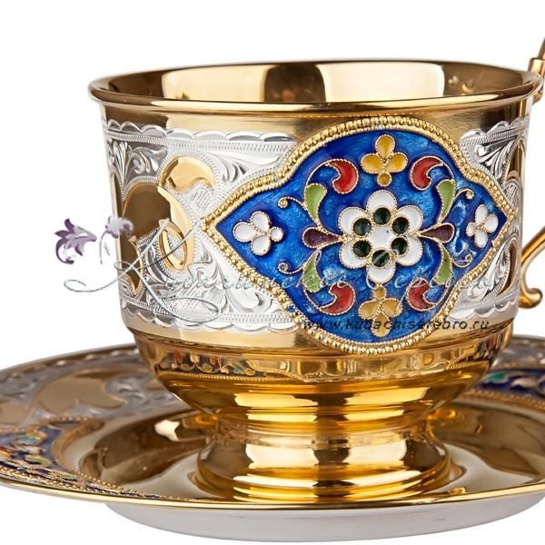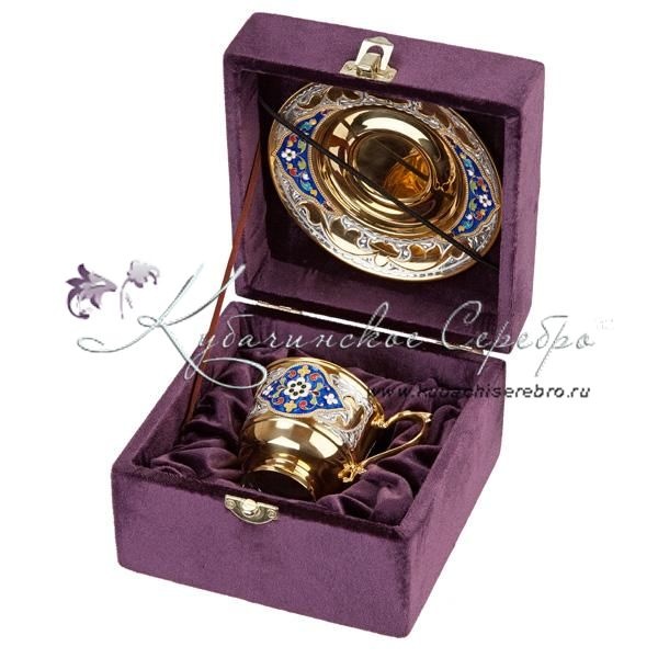 Чайная пара с эмалью серия "Версаль" на 130 мл, арт №2119