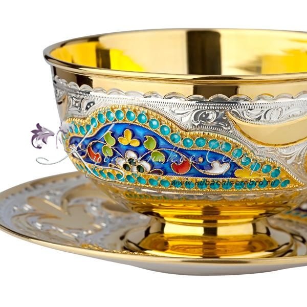 Серебро 875 пробы, покрыта позолотой 999 пробы.