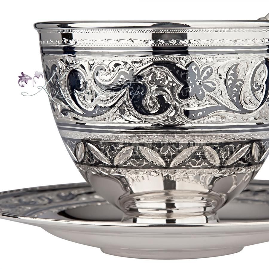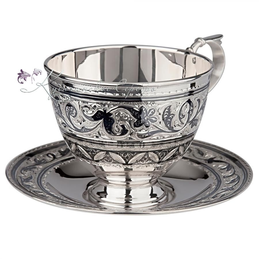 Серебряная чайная пара в люксовом исполнении, на 200 мл , арт №2136