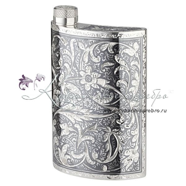 Фляга серебряная с чернением на 140 мл , арт №3236