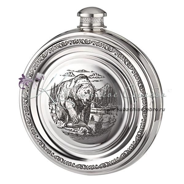 Фляга с двухсторонней гравировкой "Бурый медведь" на 140 мл , арт №3290