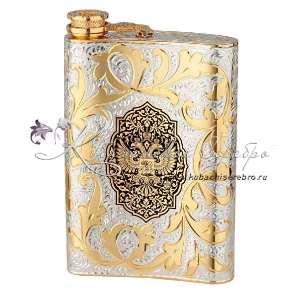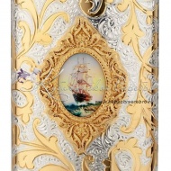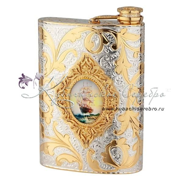 Позолоченная фляга с филигранью "Корабль" на 290 мл , арт №4464