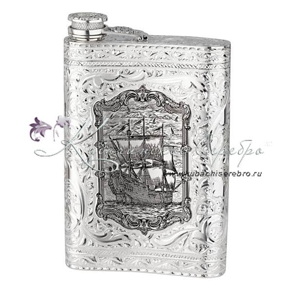 Фляга с филигранью "Корабль" на 290 мл , арт №4739