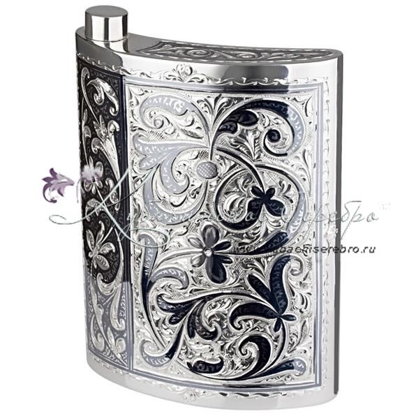 Фляга из серебра серия "Кубачи" на 250 мл, арт №1901