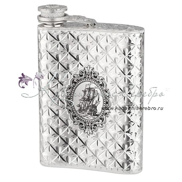 Фляга серебряная "Девушка с собачкой" на 270 мл , арт №4670