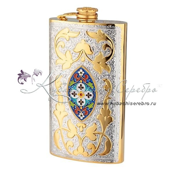 Фляга серебряная с эмалью на 300 мл , арт №2000