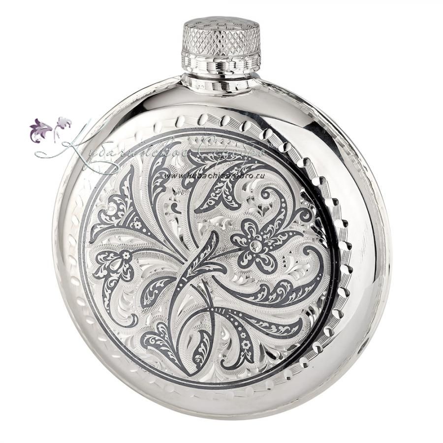 Фляга с чернью серии "Кубачи" на 140 мл (Новинка), арт №3117