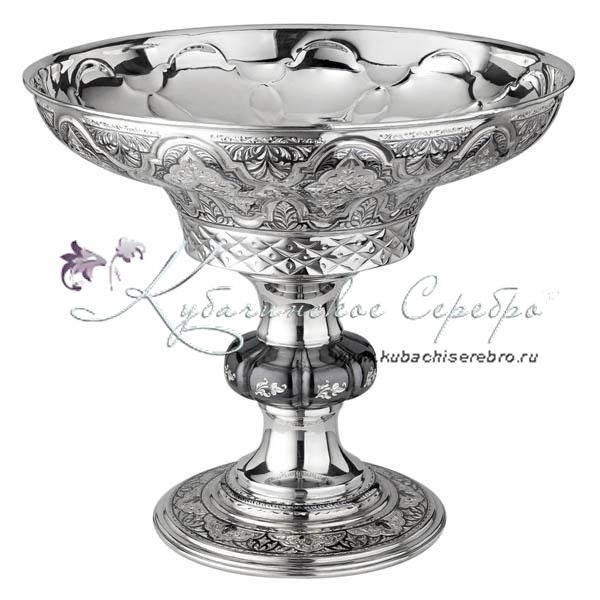 Серебро 875 пробы. Фруктовница с чернением, выполнена кубачинскими ювелирами по вековым традициям! Ножка покрыта оксидированием.