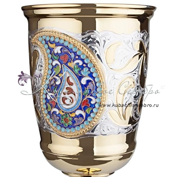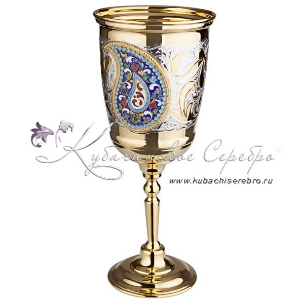 Бокал для вина с позолотой и эмалью на 300 мл , арт №1829