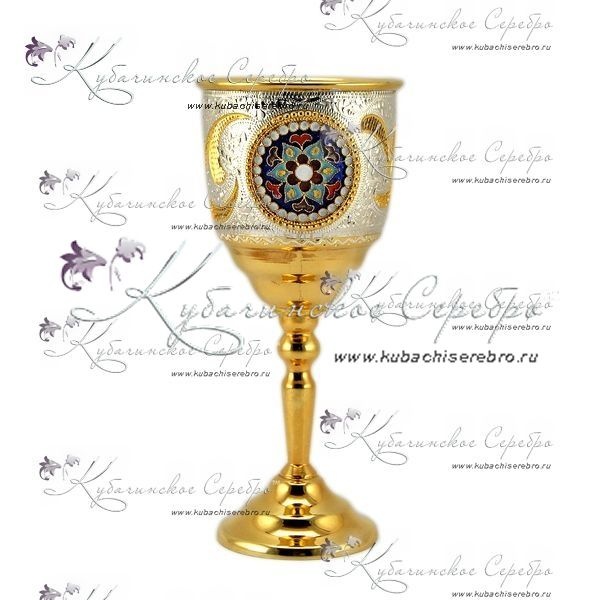 Серебро бокал 875 пробы. С позолотой 999 пробы и с применением горячей эмали!