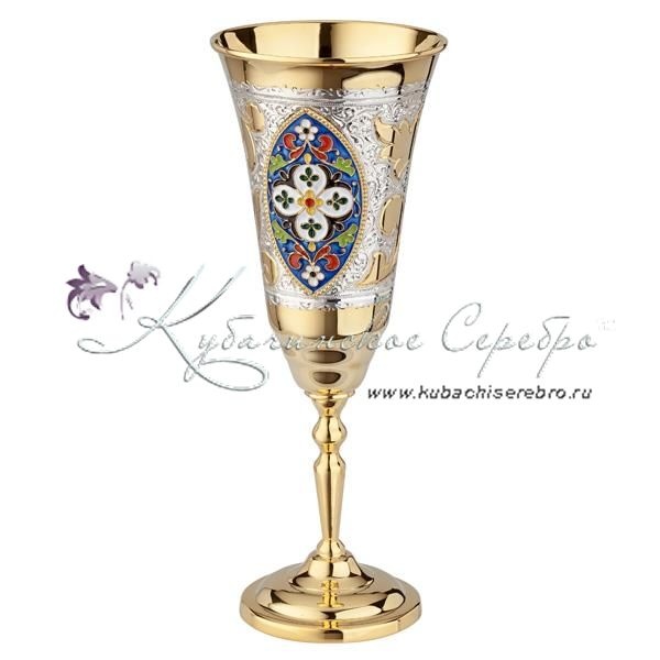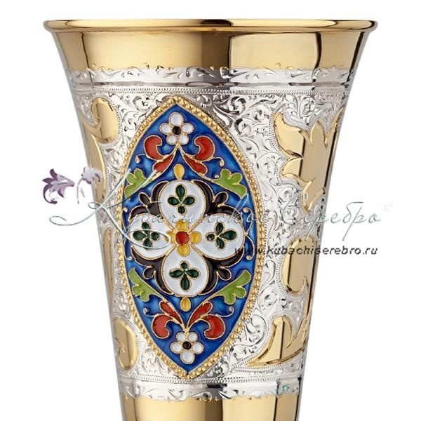 Серебряный бокал с позолотой и горячей эмалью на 170 мл, арт №2215