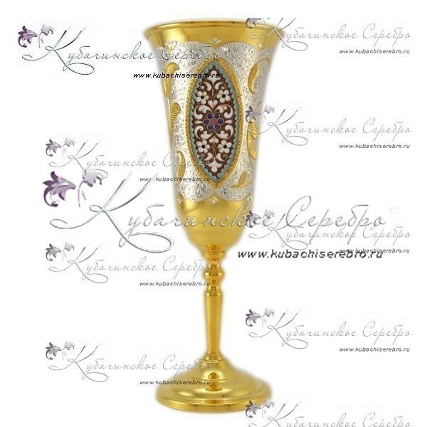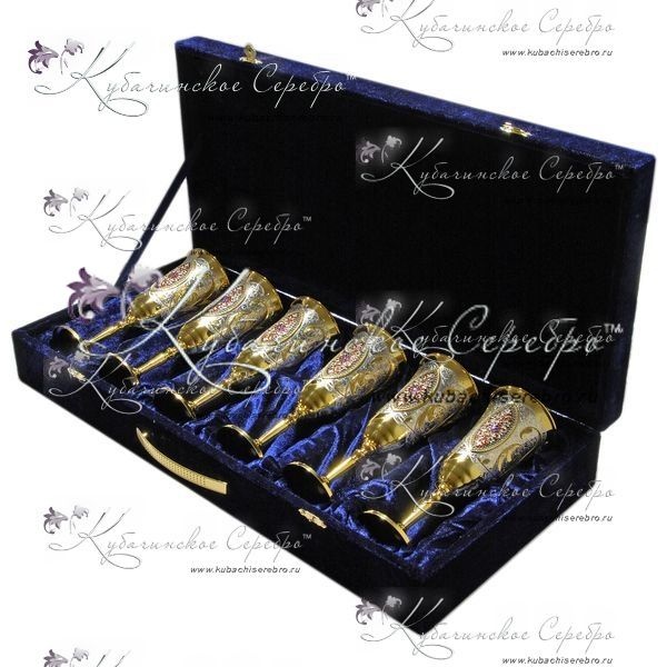 Серебряные 875 пробы. Набор бокалов на 6 персон. С позолотой 999 пробы и горячей эмалью!