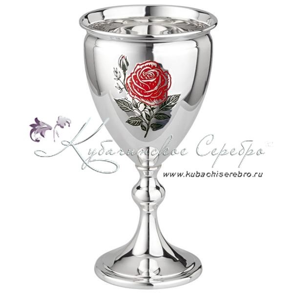 Фужер "Роза" 999 пробы с холодной эмалью на 185 мл (Новинка), арт №6791