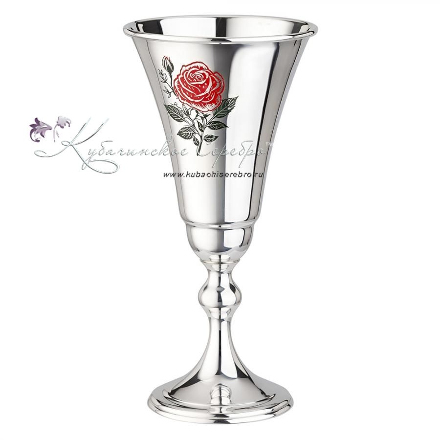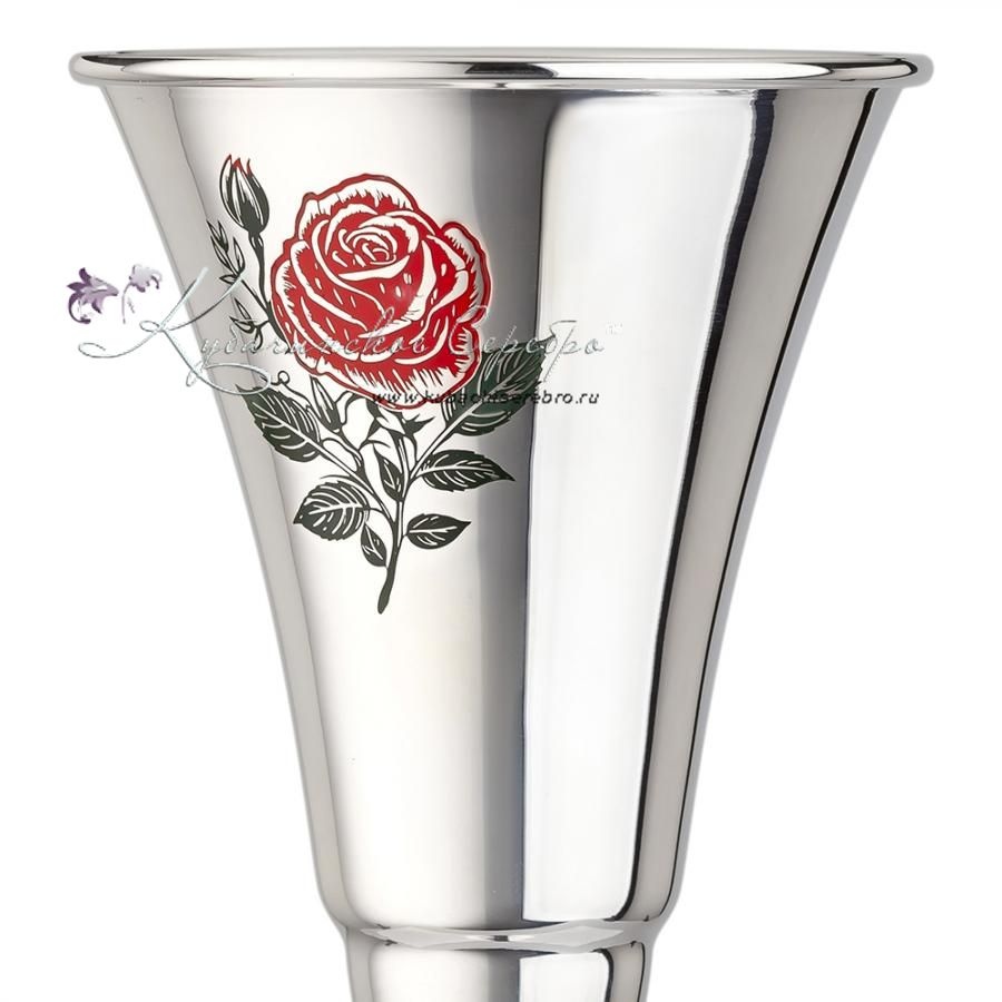 Фужер "Роза" 999 пробы с холодной эмалью на 130 мл (Новинка), арт №6791/3