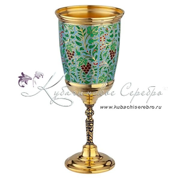 Позолоченный бокал "Виноградная лоза" с холодной эмалью на 300 мл, арт №6467