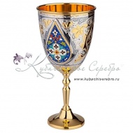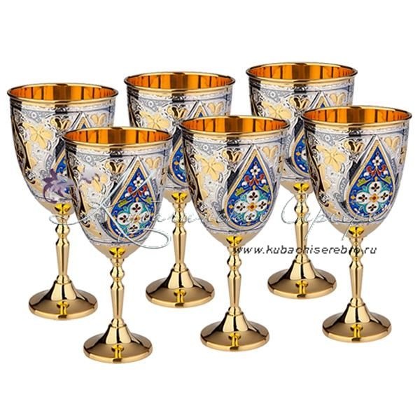 Серебряный 875 пробы. Набор бокалов на 6 персон, с позолотой 999 пробы и горячей эмалью.!