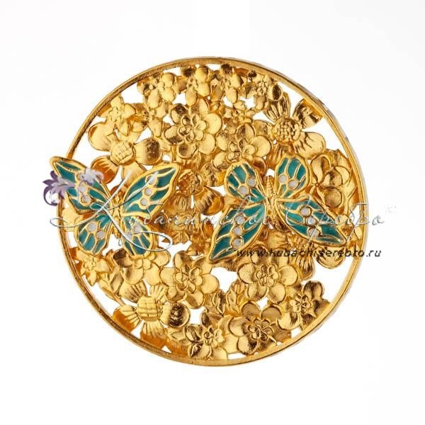 Серебро 925 пробы. Покрыт позолотой 999 пробы. С холодной эмалью. Изделие в фирменной подарочной упаковке.
