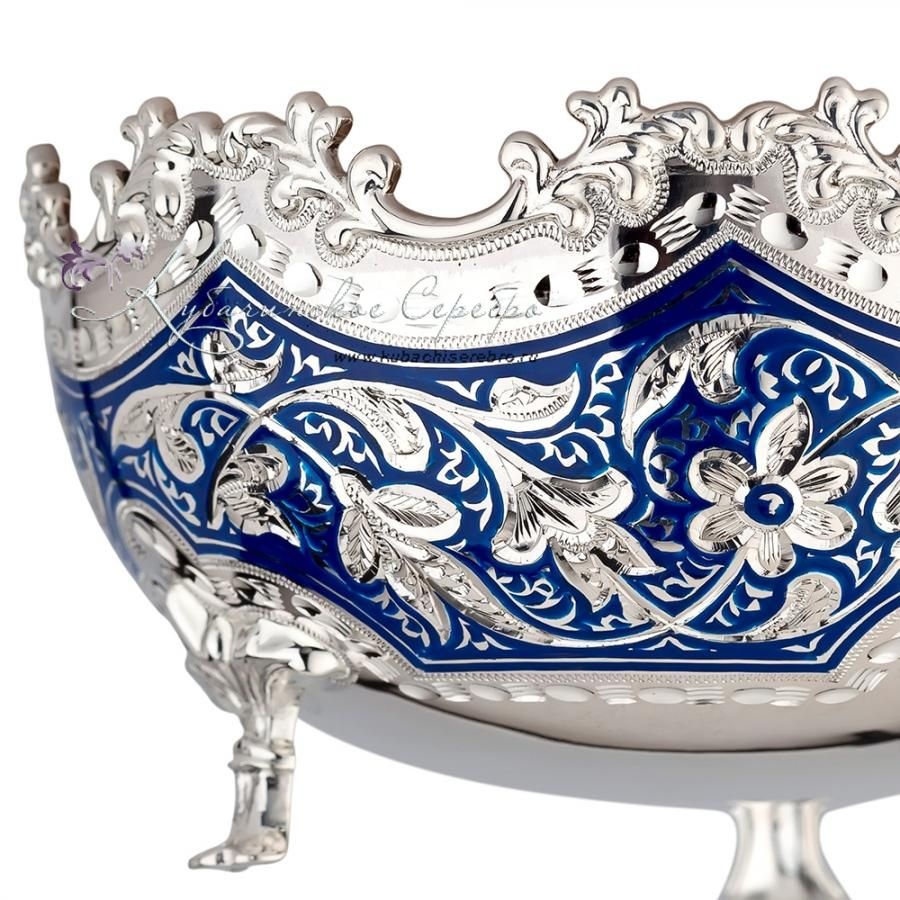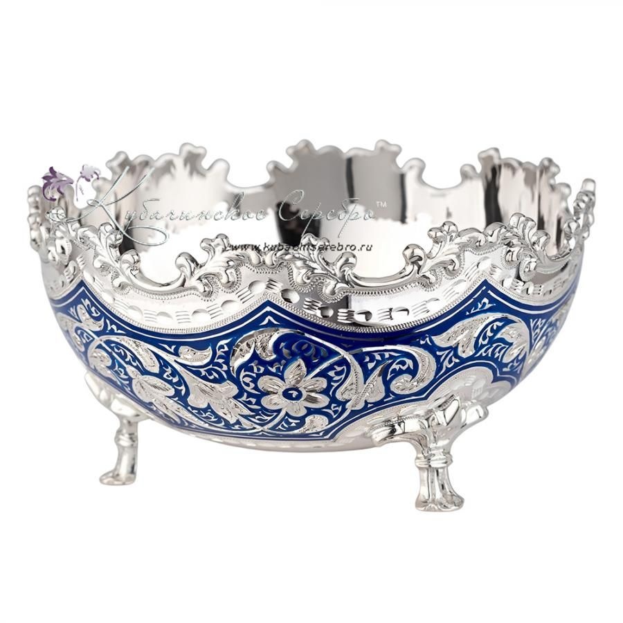 Конфетница "Жасмин" мини, с синей холодной эмалью (Новинка), арт №2200/3