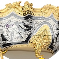 Серебро 875 пробы. Покрыта позолотой 999 пробы.