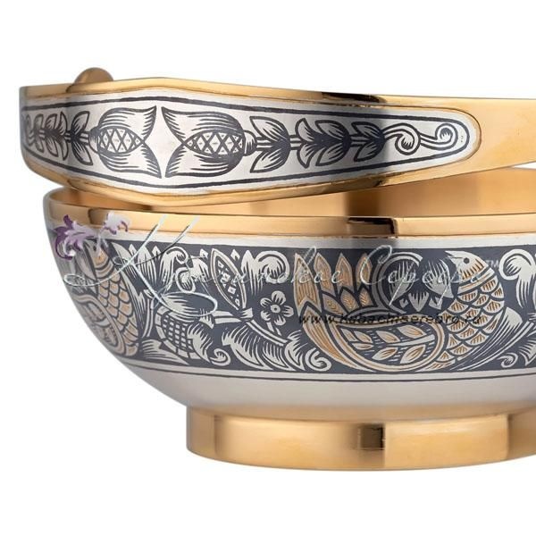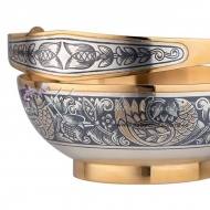 Серебро 925 пробы, с позолотой. Изделие из серебра с черневым рисунком, выполненное по уникальной технологии мастерами завода «Северная чернь».