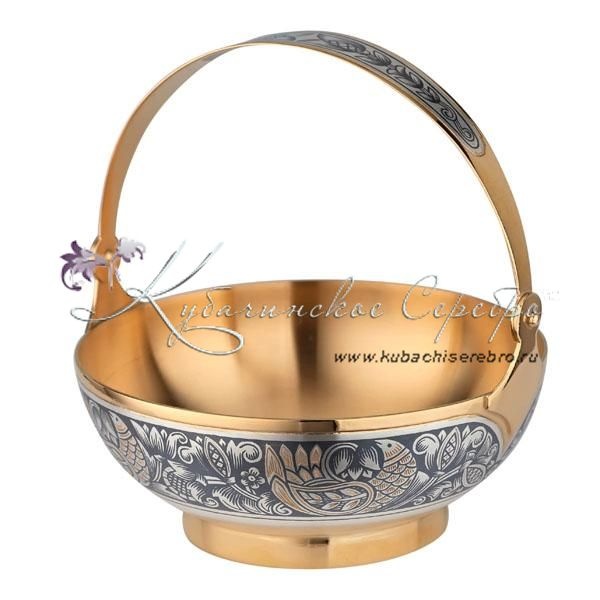 Позолоченная конфетница 925 пробы "Птицы" , арт №8107