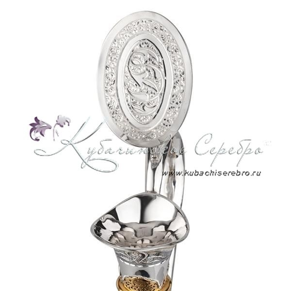Серебро 875 пробы. С позолотой 999 пробы, с выпиленными вставками. Мастерство передается от отца к сыну. Авторская работа от кубачинского мастера!
