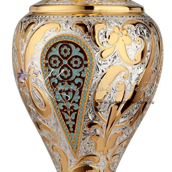 Кувшин с крышкой, с горячей эмалью и позолотой на 1060 мл , арт №2053