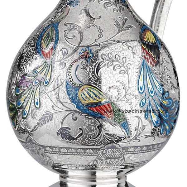 Кувшин "Жар-птица" с холодной эмалью 925 пробы на 2360 мл , арт №6392