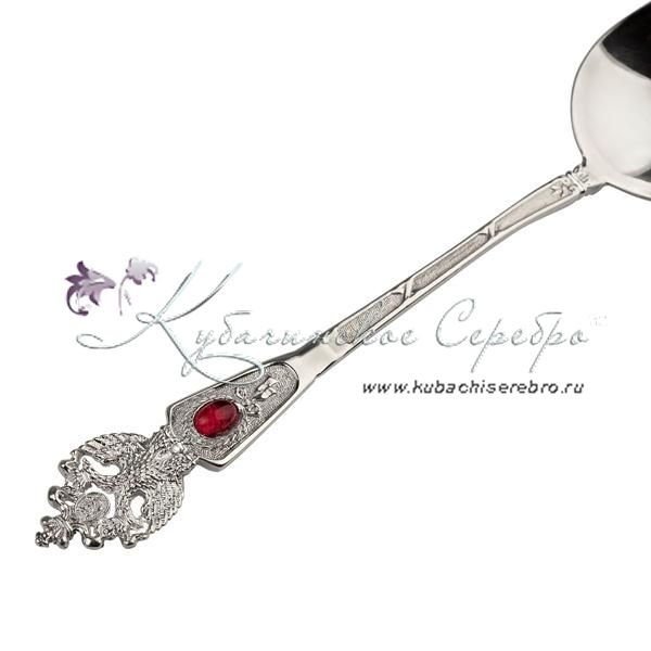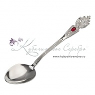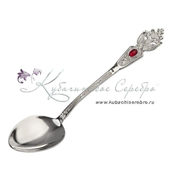 Серебряная чайная ложка "Россия" с красным камнем, арт №1614