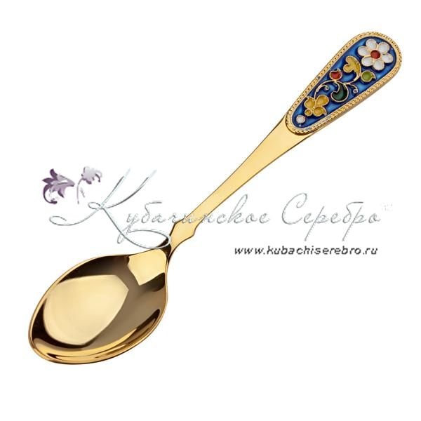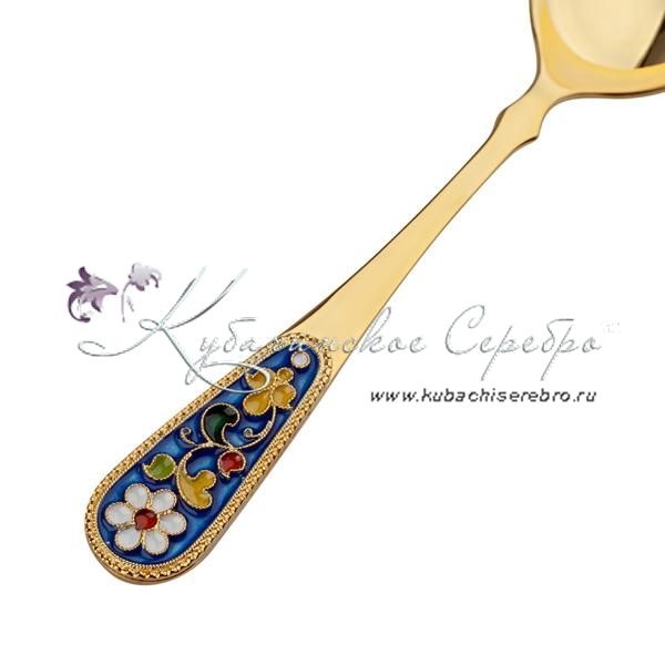 Серебряная чайная ложка с эмалью и позолотой серия «Версаль», арт №1557