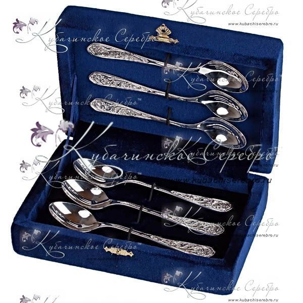 Набор серебряных чайных ложек серия "Кубачи 1", арт №1521