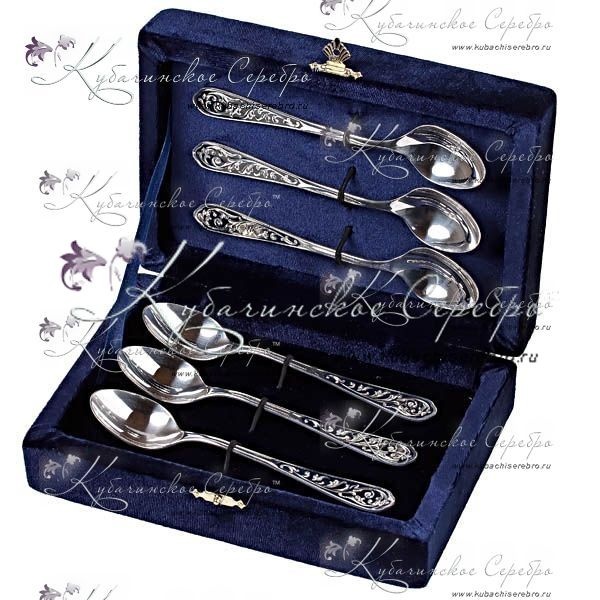 Набор серебряных чайных ложек серия "Кубачи", арт №1516