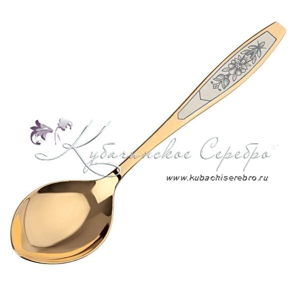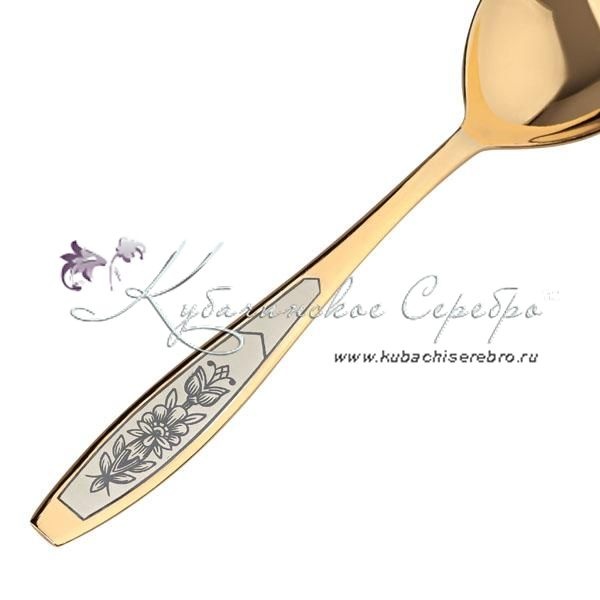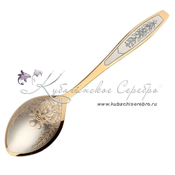 Серебряная столовая ложка "Астра" с позолотой, арт №8111