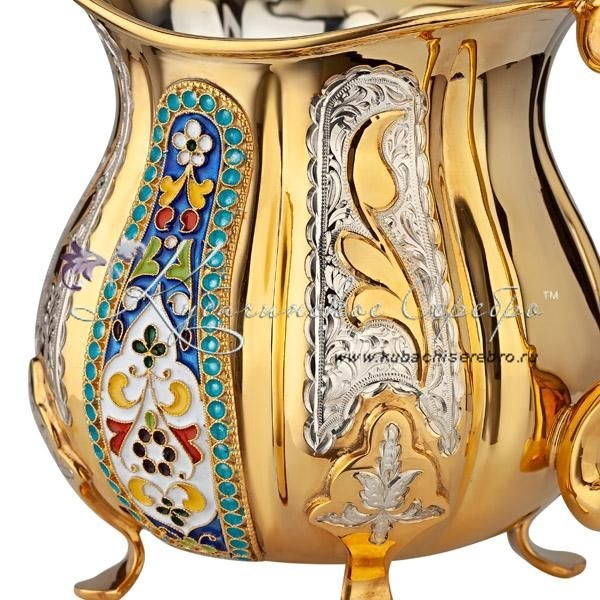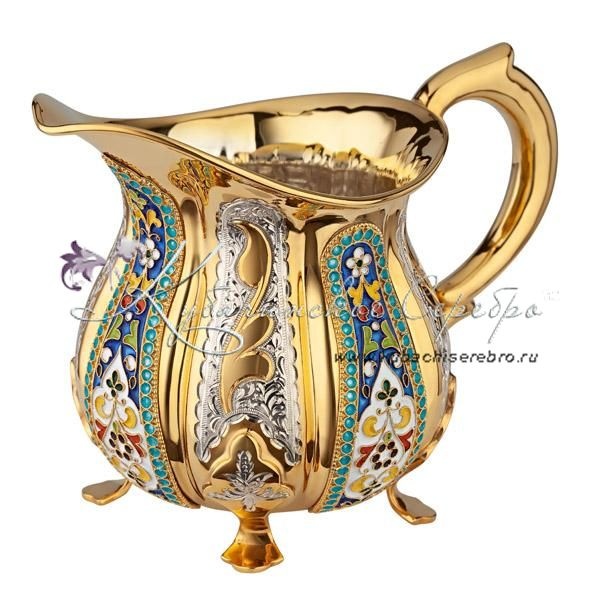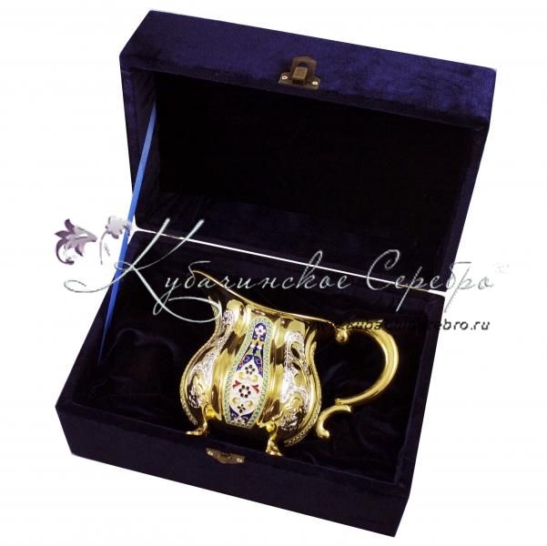 Молочник с позолотой и горячей эмалью на 420 мл, арт №3009