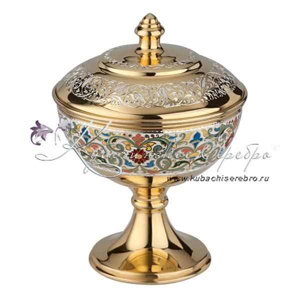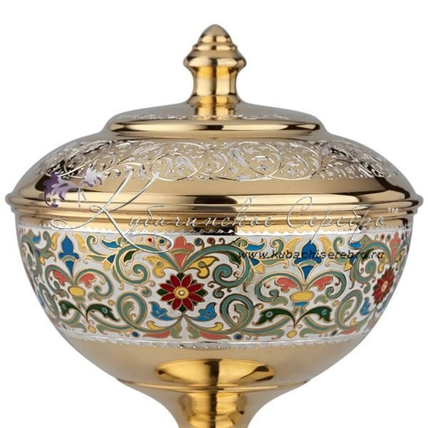 Позолоченная вареньица из серебра 999 пробы с эмалью, арт №8262
