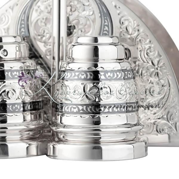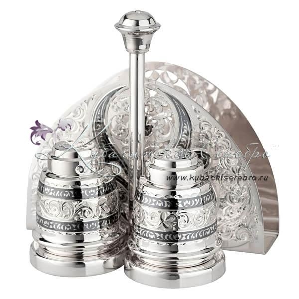 Серебро 875 пробы. В набор входят 2 солонки для соли и перца, а так же отдел для салфеток!