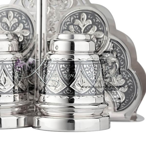 Серебро 875 пробы. В набор входят 2 солонки для соли и перца, а так же отдел для салфеток!